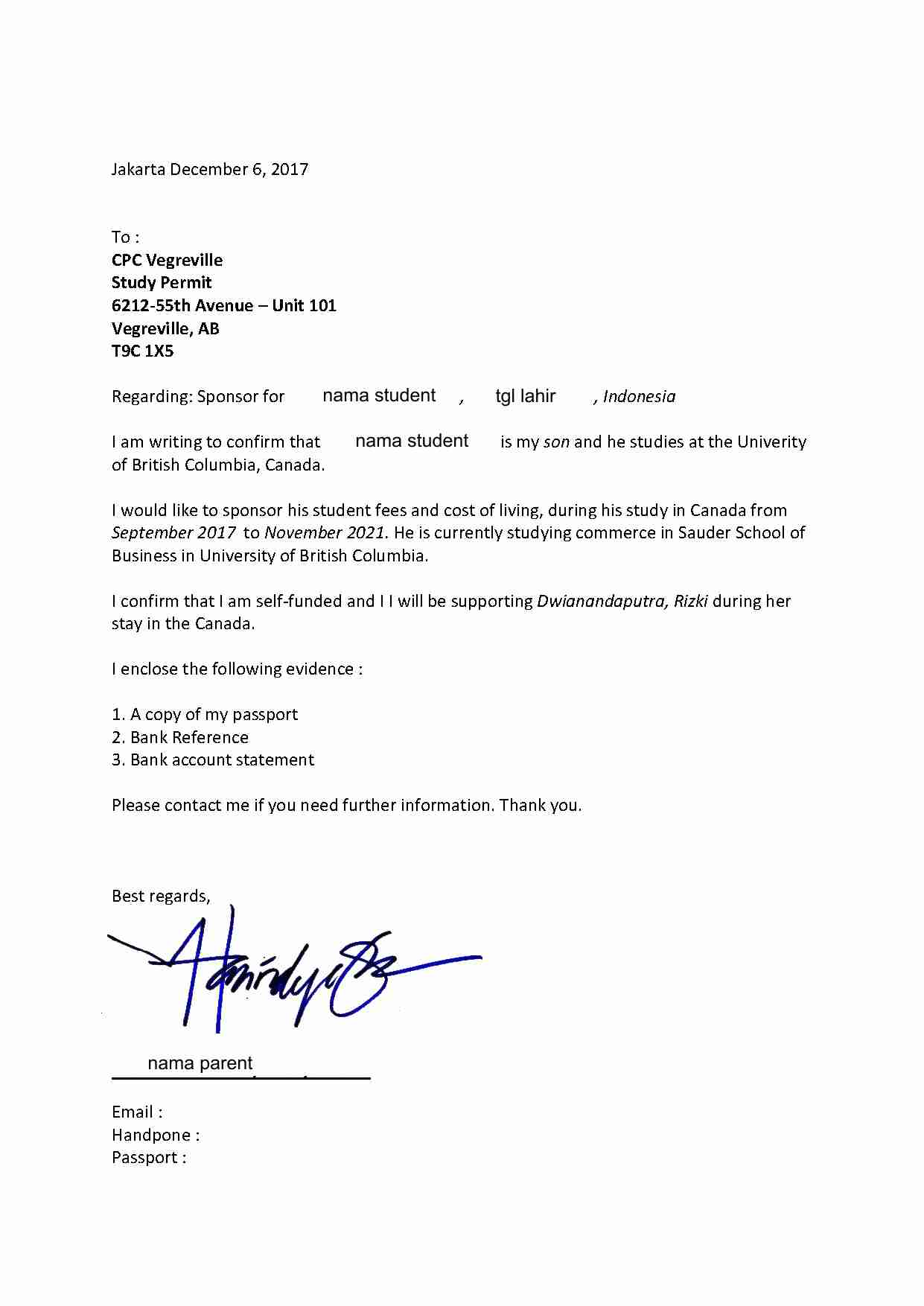 3. Nilai besarannya, sekitar 1 tahun biaya hidup di Canada, yaitu minimal sekitar 10-15 ribu CAD, dalam bentuk asset mengendap, yang ada transaksi lain-lainnya. Transaksinya sekitar 3 bulan (minimal), lebih panjang lebih baik. Ini asumsinya tuition fee sudah bayar, cantumkan bila sudah melakukan pembayaran. Kalau belum membayar, maka diatas nilai 10-15 ribu CAD tersebut tambahkan dengan nilai tuition fee. Bilamana memungkinkan, lengkapi dengan Referensi Bank dan Surat Sponsor dari orangtua seperti contoh.